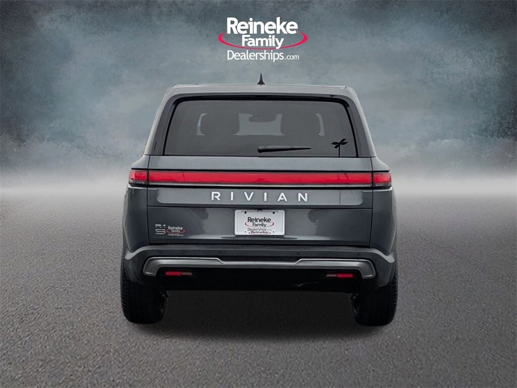Check out all these great options! 12 Speakers, 3rd row seats: bench, 4-Wheel Disc Brakes, 7 Seat Interior, ABS brakes, Adaptive suspension, Air Conditioning, Alloy wheels, Audio memory, Auto High-beam Headlights, Auto tilt-away steering wheel, Auto-dimming door mirrors, Auto-dimming Rear-View mirror, Auto-leveling suspension, Automatic temperature control, Brake assist, Delay-off headlights, Driver door bin, Driver vanity mirror, Dual front impact airbags, Dual front side impact airbags, Electronic Stability Control, Emergency communication system, Exterior Parking Camera Rear, Four wheel independent suspension, Front anti-roll bar, Front Bucket Seats, Front Center Armrest, Front dual zone A/C, Front fog lights, Front reading lights, Fully automatic headlights, Garage door transmitter, Heated & Ventilated Front Seats w/Memory, Heated door mirrors, Heated front seats, Heated rear seats, Heated steering wheel, Illuminated entry, Knee airbag, Low tire pressure warning, Memory seat, Navigation System, Occupant sensing airbag, Outside temperature display, Overhead airbag, Panic alarm, Passenger door bin, Passenger vanity mirror, Perforated Vegan Leather Seat Trim w/Dark Ash Wood, Power door mirrors, Power driver seat, Power passenger seat, Power steering, Power windows, Radio: Rivian Standard Audio, Rain sensing wipers, Rear air conditioning, Rear anti-roll bar, Rear audio controls, Rear dual zone A/C, Rear fog lights, Rear reading lights, Rear seat center armrest, Rear window defroster, Rear window wiper, Security system, Speed control, Speed-sensing steering, Split folding rear seat, Steering wheel memory, Steering wheel mounted audio controls, Telescoping steering wheel, Tilt steering wheel, Traction control, Trip computer, Turn signal indicator mirrors, Variably intermittent wipers, and Ventilated front seats.
